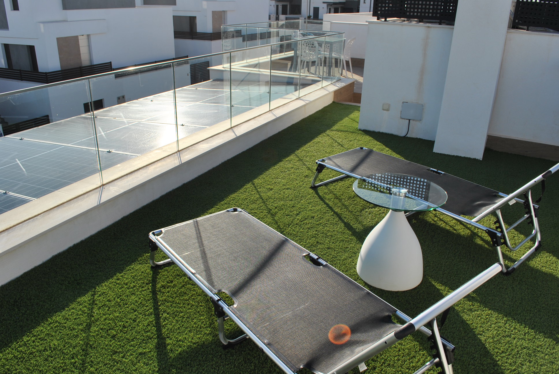This modern and beautiful villa from 2018 and facing south-west, is located in Villa Martin on the Orihuela Costa. The 3-storey villa can accommodate 8 people and has 4 bedrooms and 3 bathrooms. On the ground floor there is a very spacious, stylishly furnished living room with satellite TV with many international channels and WiFi, a modern open kitchen with all appliances, a storage room with washing machine and dryer, and a toilet. The villa is fully built with a fully furnished basement / basement with lots of light. This makes the villa well suited for 2 families of 4 persons who can have their own private space separately. In the basement there are 2 bedrooms, each with 1 x 2 single bed and 2 x 1 single beds. On the 1st floor there are 2 large bedrooms, each with an en-suite bathroom with walk-in shower. Both bedrooms have access to a spacious terrace with sunbeds. From the first floor you can reach the roof terrace / solarium from where you have a fantastic view over the salt lake of Torrevieja and the surrounding area. The villa has underfloor heating on the ground floor, in the basement and in all bathrooms. The villa naturally has air conditioning and there are electric shutters throughout the house. In the garden, adjacent to the living room, is the spacious private pool of 8 x 4 meters, the large fully equipped terrace with an outdoor shower, table with chairs and sun beds.